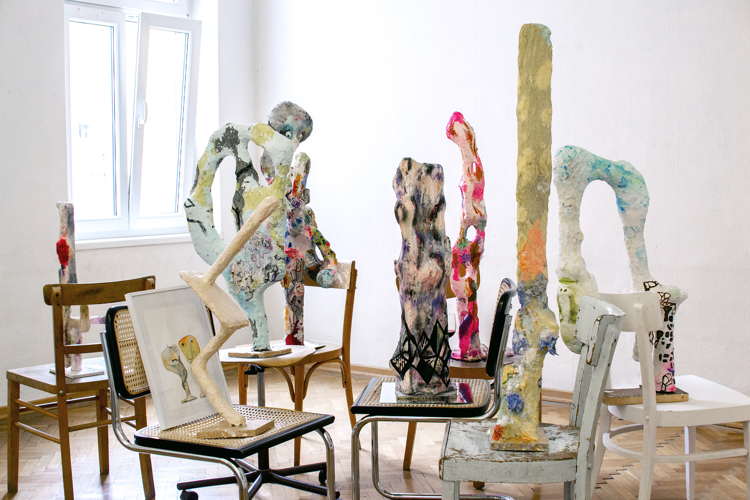 Das Video von Lea Stein, das der Ausstellung ihren Titel leiht, zeigt Abwandlungen der immer gleichen Figur, die miteinander durch ein „hmmm“ kommunizieren. Genau wie diese Figuren können sich auch „hmmm“´s je nach Tonfall trotz ihrer grundsätzlichen Übereinstimmung deutlich unterscheiden: skeptisch, schwärmerisch, begeistert, zustimmend, gleichgültig, überrascht, nachdenklich, enttäuscht.