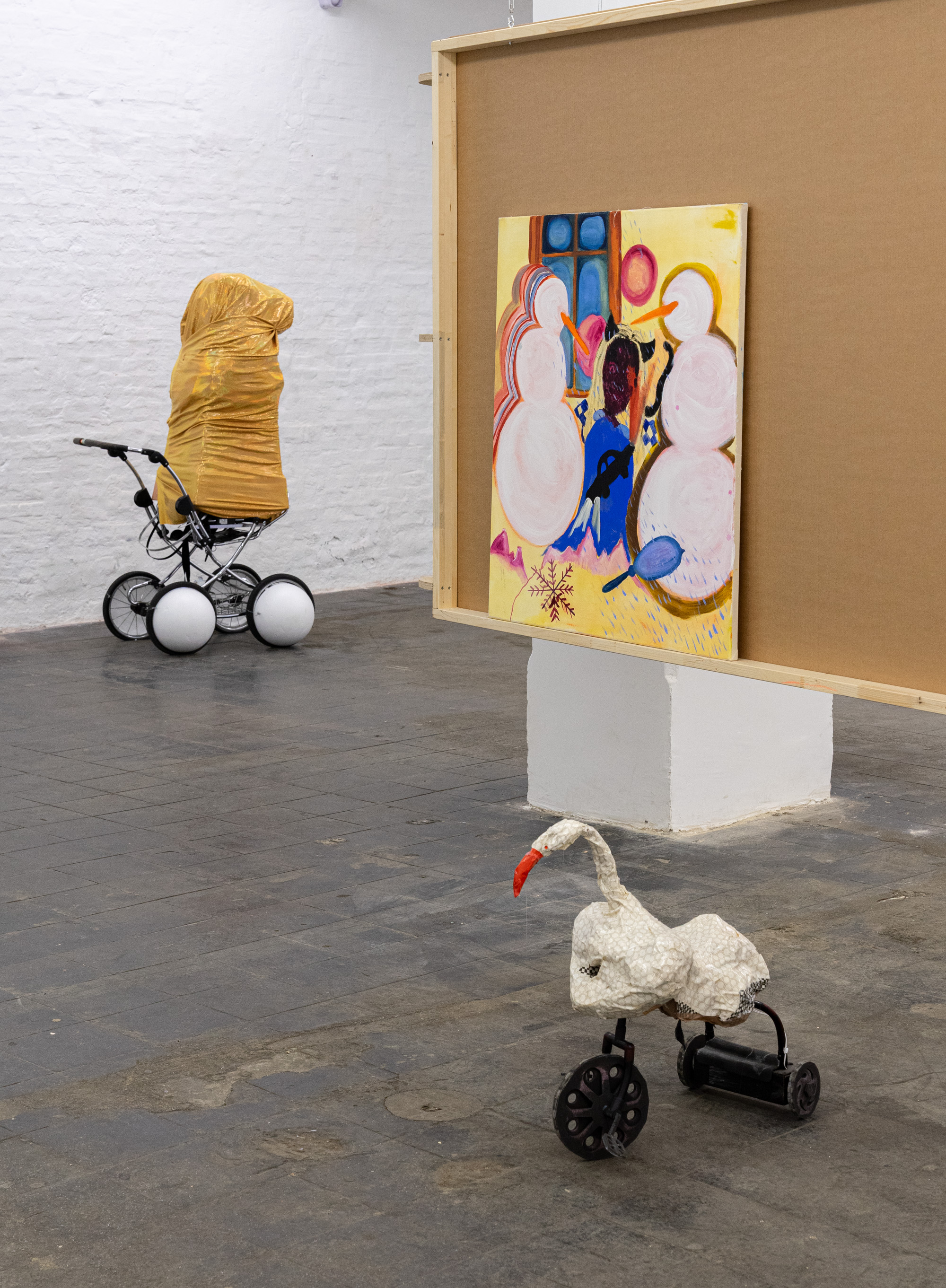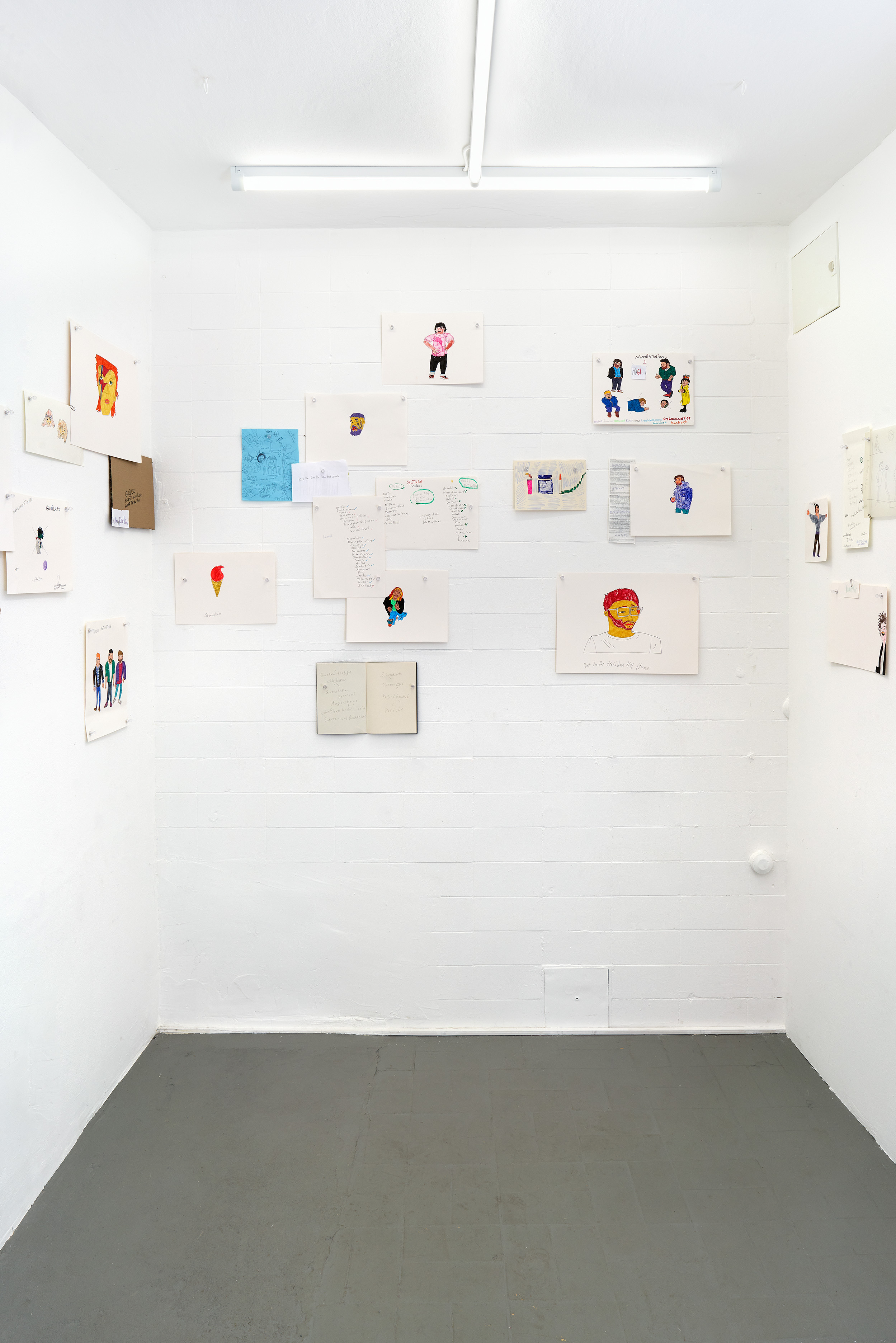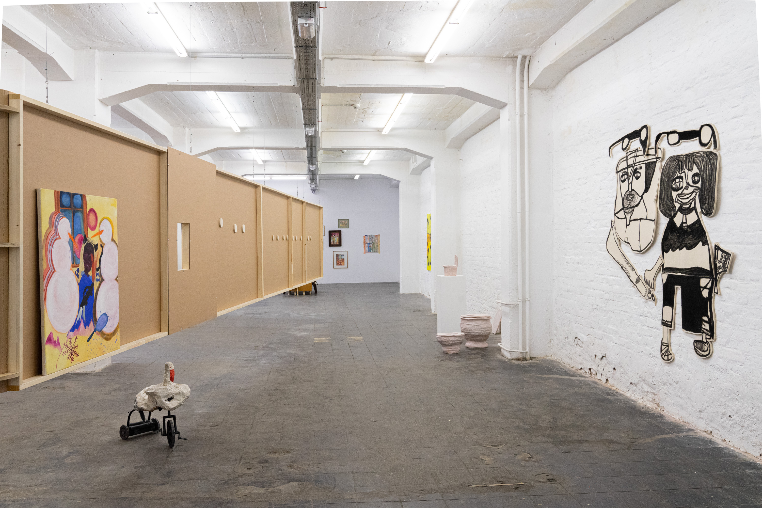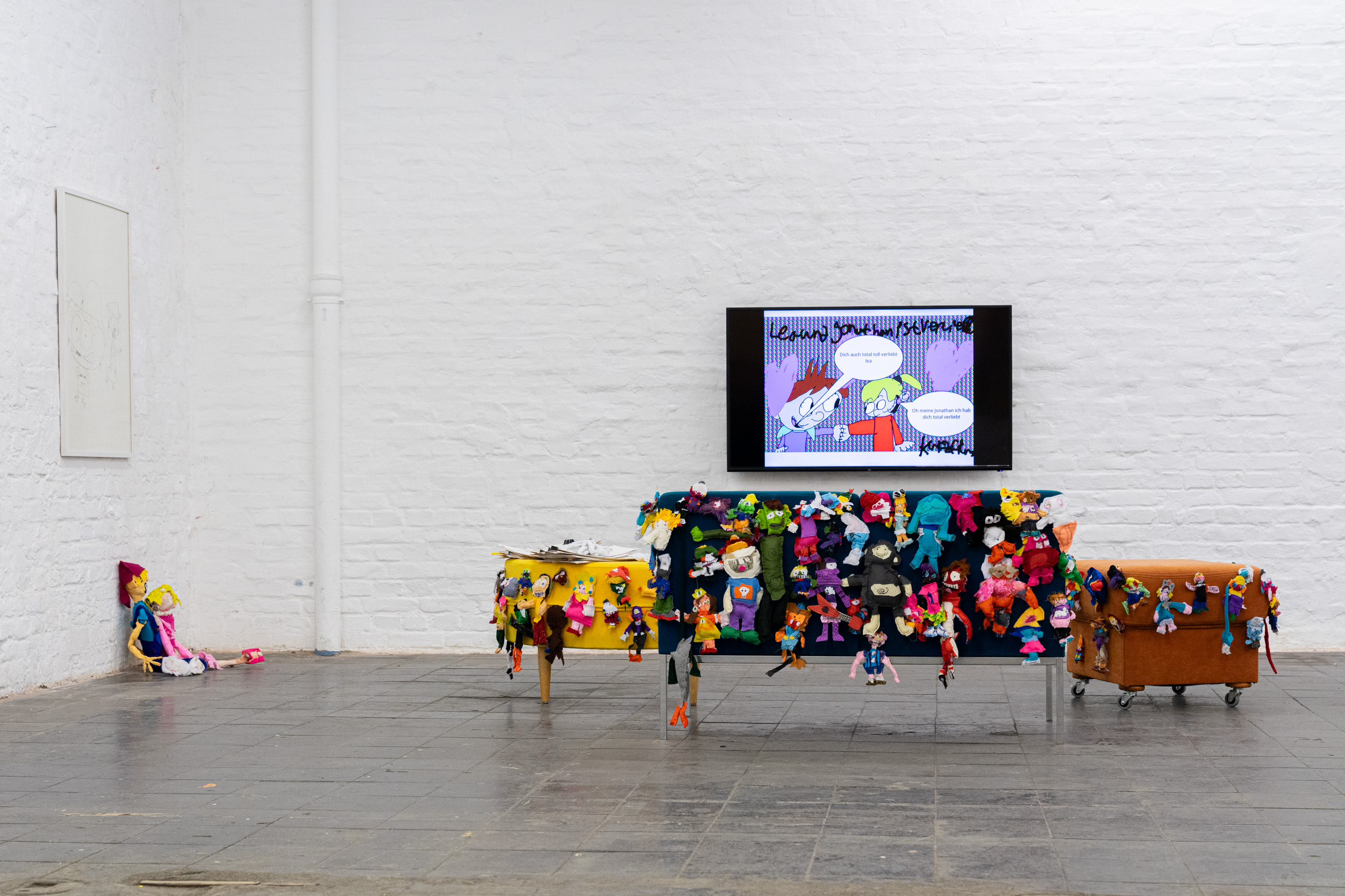 Das Video von Lea Stein, das der Ausstellung ihren Titel leiht, zeigt Abwandlungen der immer gleichen Figur, die miteinander durch ein „hmmm“ kommunizieren. Genau wie diese Figuren können sich auch „hmmm“´s je nach Tonfall trotz ihrer grundsätzlichen Übereinstimmung deutlich unterscheiden: skeptisch, schwärmerisch, begeistert, zustimmend, gleichgültig, überrascht, nachdenklich, enttäuscht.
